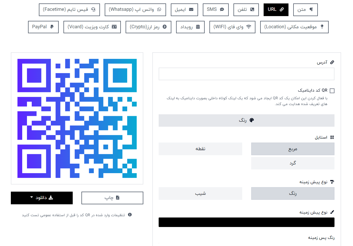 کدهای QR استاتیک یا داینامیک بسیار آسان و بسیار قابل تنظیم.